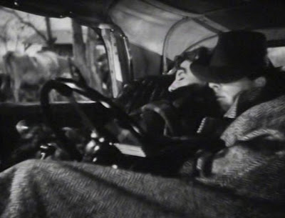 a) looks like Dirk Boagarde in the driver's seat - is that Alexis Smith on the passenger side?